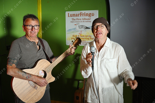 Lunar Fringo are a band of from the inner west who are releasing an album of songs first written 50 years ago. Pic of Sam Gadd and his bandmate Richard Tregear. (Damjan Janevski). 518848_02
