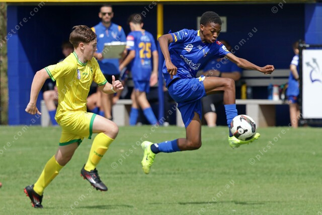 Gawler’s Steven Ngezahayo controls the bouncing ball during his two-goal performance on Sunday morning. (Michael Slattery: 465980_01)