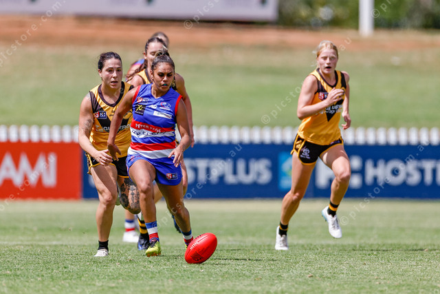 Star Bulldogs recruit Tesharna Maher leads the race to the loose footy. (465908_10)