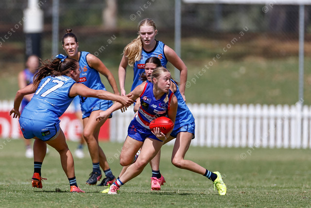 Dakota Williams comes away with the footy amidst a maze of Sturt jumpers. (467450_03)