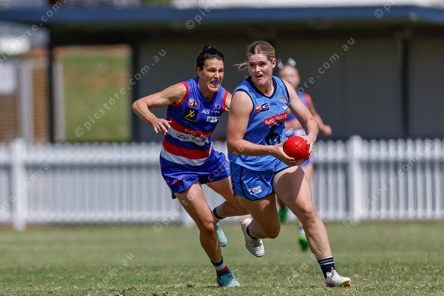 Former BLGW Senior Women’s medallist Liz Wilson chases down the ball-carrier. (467450_07)
