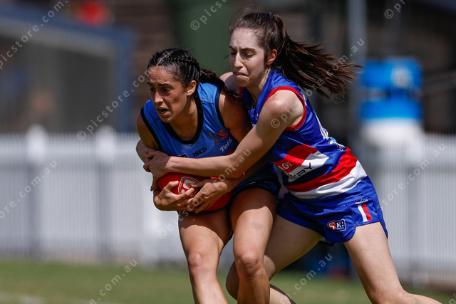Karissa Searle pins the arms in a textbook tackle. (467450_10)