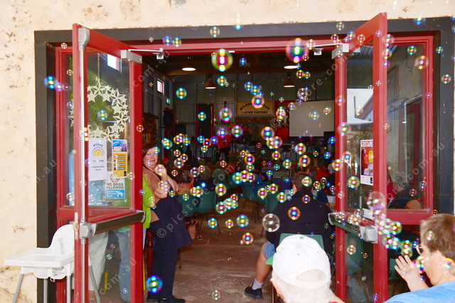 Bubbles flow out of the Milang Butter Factory at the carols. (Mark Liebich) 26260_04