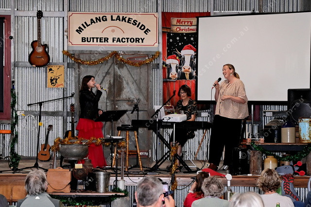 Jessica Saliba singing with Emma Smith at the Milang Butter Factory. (Mark Liebich 526260_08)