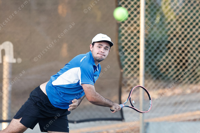 Lane Reschke drills a hard serve. (466325_05)
