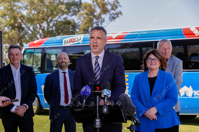 Premier Peter Malinauskas addressing the media in the Barossa on Wednesday. 467154_04