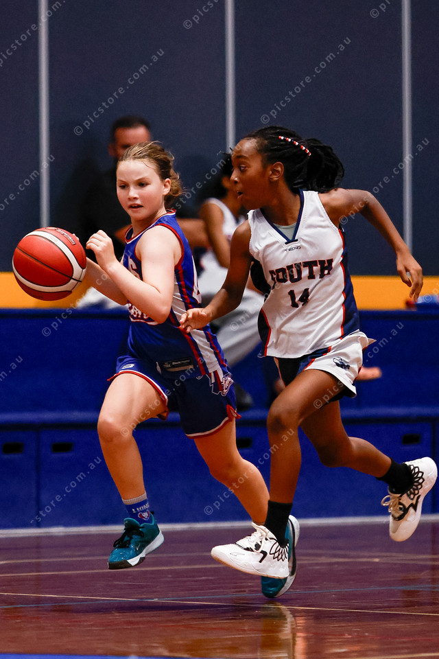 Camilla Alderton protects the ball on her way to a season-high 28 points for the rampaging Lions under 12 girls. (Mark Willoughby: 467540_04)