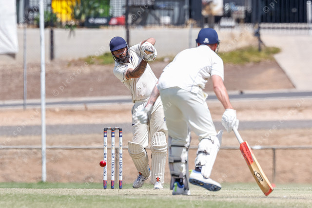 Willaston’s Adam Lewis drives one back past the bowler. (462975_04)