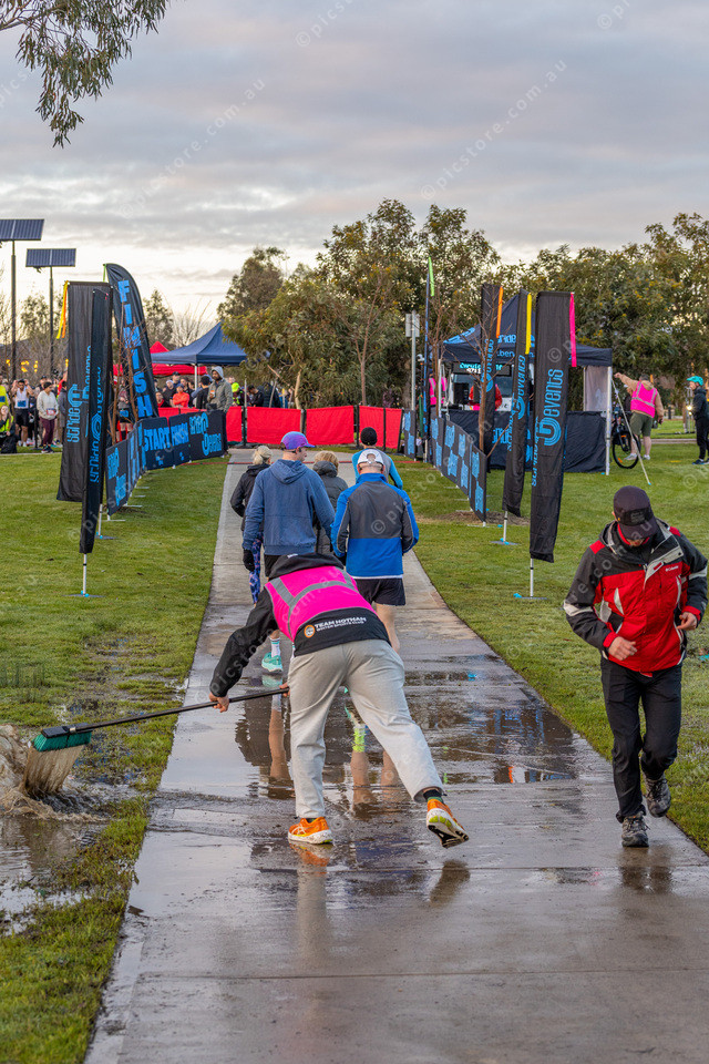 Squeegeeing the track just before the Start/Finish line. This was before the start of the race.