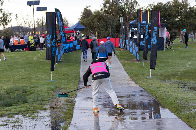 Squeegeeing the track just before the Start/Finish line. This was before the start of the race.