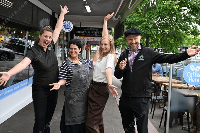 Sunbury Business Association, Christmas Twilight Market. Pic of (L-R): Rachel Forester (Just Planet), Bec Bremner (Ottimo), Elizabeth Homann (Get It Started) and Jon Fettes (Regenerate Engineering). (Damjan Janevski). 517154_03