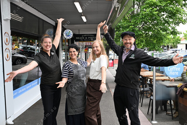 Sunbury Business Association, Christmas Twilight Market. Pic of (L-R): Rachel Forester (Just Planet), Bec Bremner (Ottimo), Elizabeth Homann (Get It Started) and Jon Fettes (Regenerate Engineering). (Damjan Janevski). 517154_05
