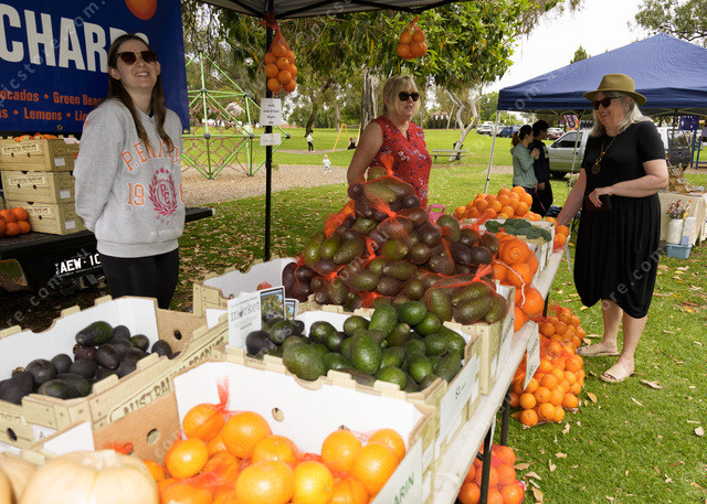 Emily Baker, Joanne Baker and Kerry Perry at the Sunbak Orchards stall at the Sunraysia Farmers Market