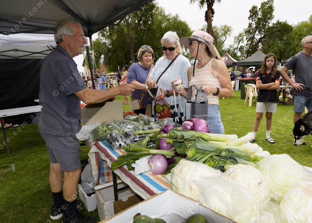 Desley Gibson and Helen North buying their fresh produce at the Sunraysia Farmers Market