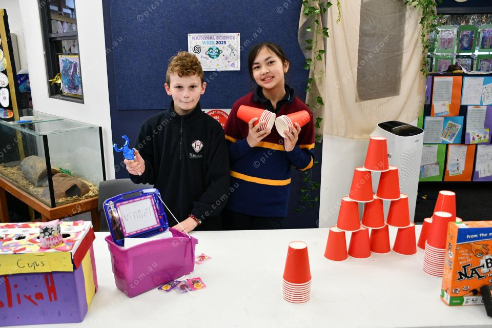 Hunter Blacklidge and Aaliyah Esperanzate ran a mystery prize, beat the host cup stacker game in their stall.