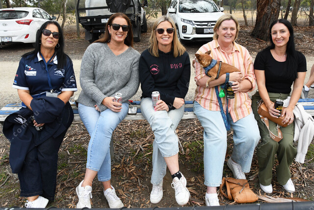 FOOTY SHORTS Peacedale and Cranbourne supporters sit together for the John Martello Shield game. Meaghan, Tracey, Chris, Kate and Tash 468482_05