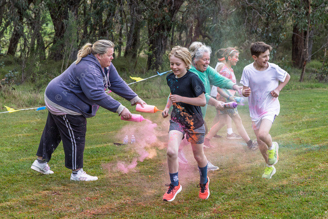 The 8:00am Fun Run at the first colour station.