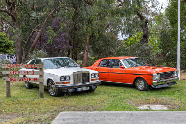 A Rolls Royce and Ford Falcon at the front of Maryknoll CFA.