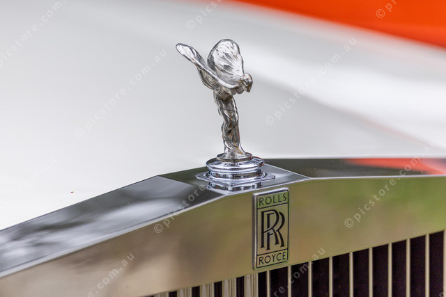 Spirit of Ecstasy a Rolls Royce at the car show. NB: the Spirit of Ecstasy is the hood ornament on a Rolls Royce Car.