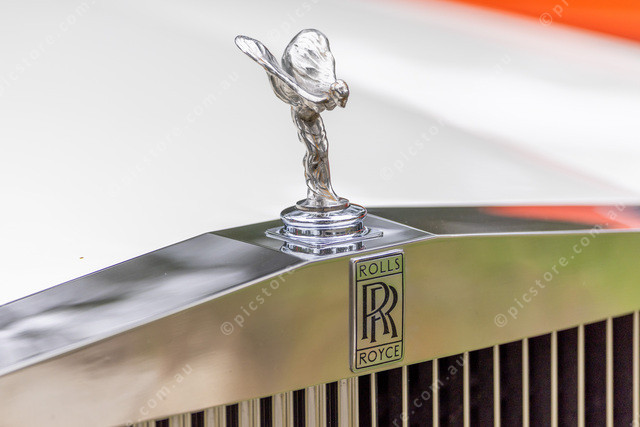 Spirit of Ecstasy a Rolls Royce at the car show. NB: the Spirit of Ecstasy is the hood ornament on a Rolls Royce Car.
