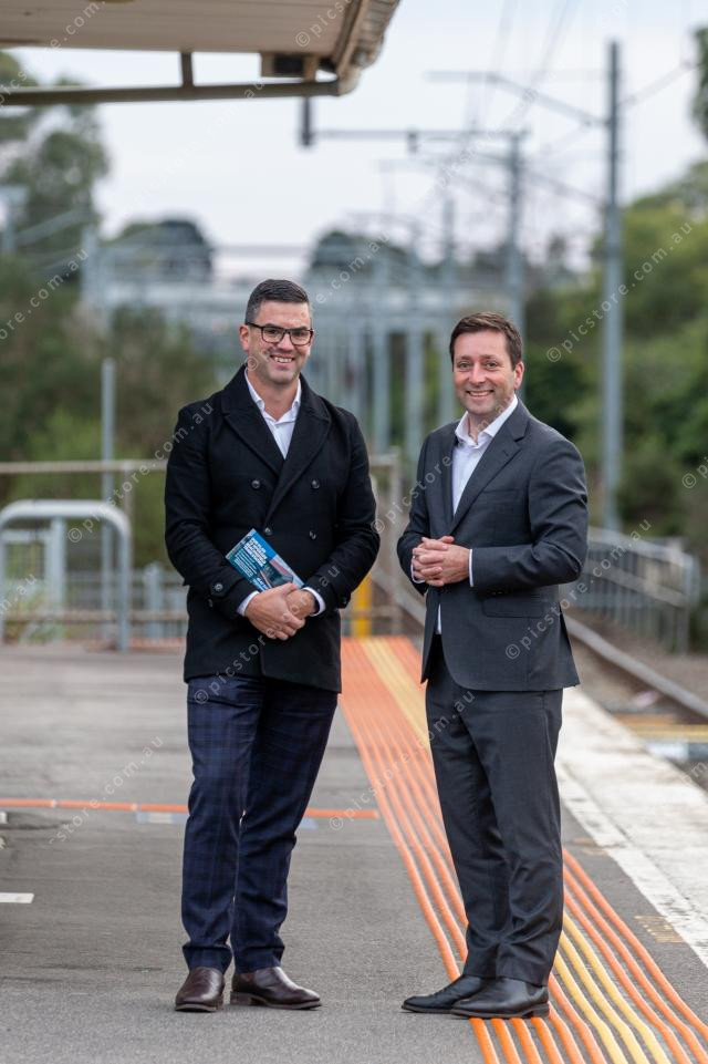 L-R Brad Battin and Matthew Guy at Beaconsfield Station.