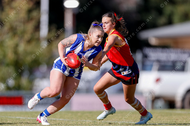 Alannah Watts uses her pace to escape the clutches of Charli Colbourne. (479091_03)
