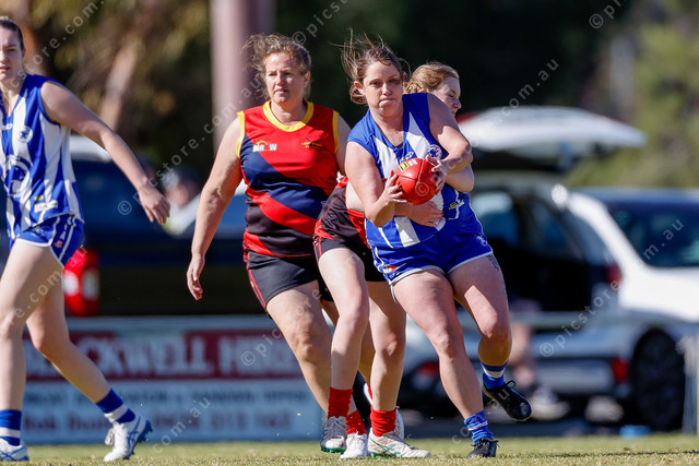 South’s Jasmine Branch tries to get a handball away as Alabama Morris lays the tackle. (479091_04)