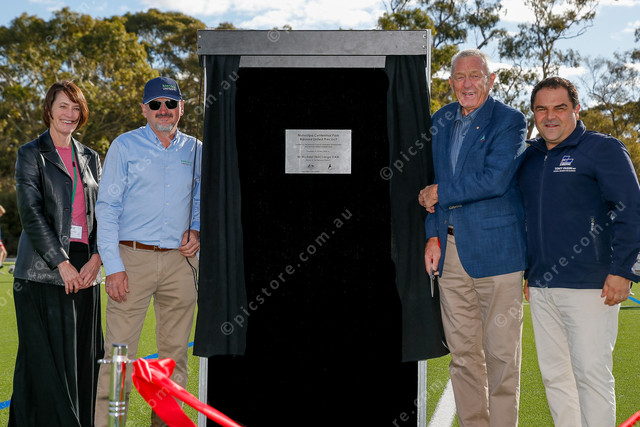 Dr. Jane Rathjen, George Triandfyllidia, Barossa Council mayor Bim Lange OAM and Tony Pasin MP unveil the commemorative plaque. (478767_02)