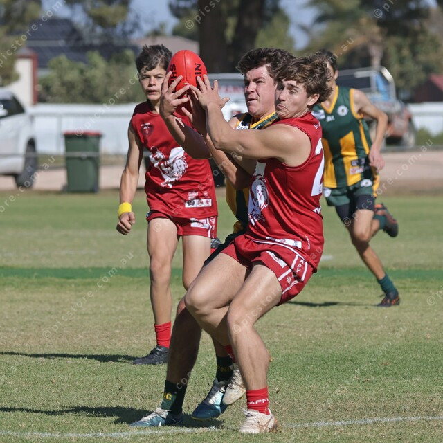 Isaac Blanchard and Aden Baker both try to claim the mark. (480306_04)
