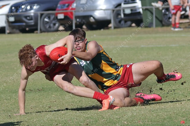Ethan Ansell holds onto Hartley Bailley as he tries to escape. (480306_10)