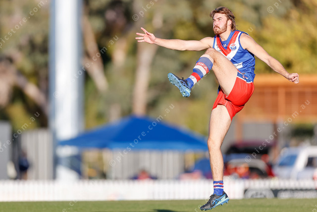 Bulldogs ruck Ethan Webb clears out of the centre after a stoppage free kick. (480596_05)