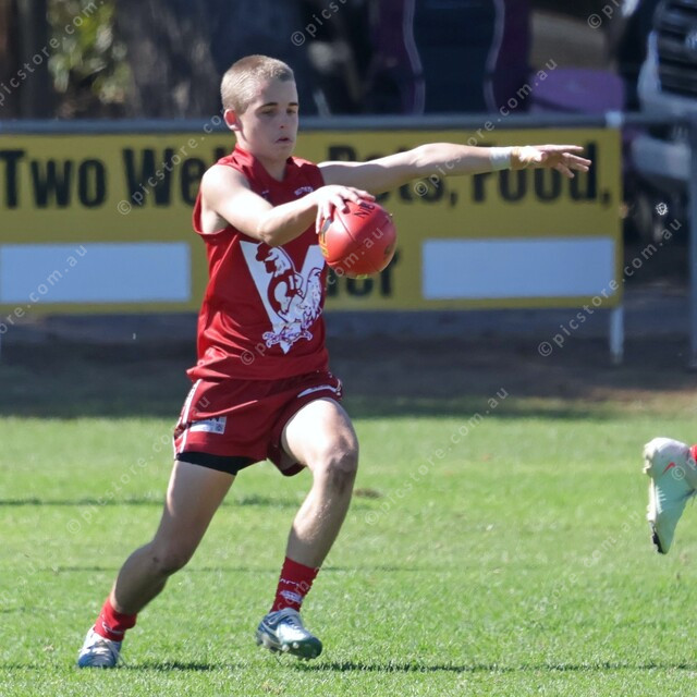 Two Wells’ Tommy Russell roosts one long. (Michael Slattery: 476187_01)