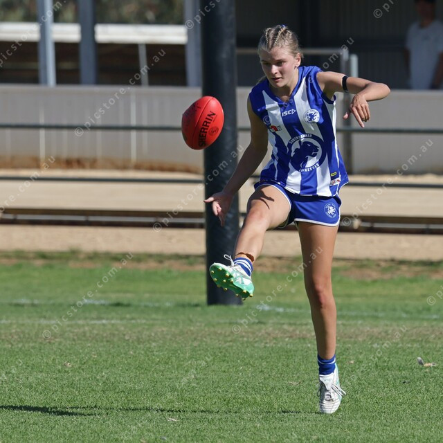 South Gawler’s Anya Jackson kicks out of defence. (475936_01)