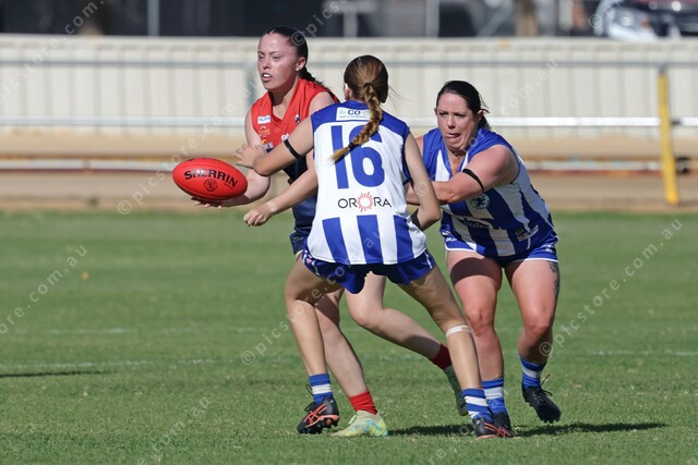 Willaston’s Jessica Wendland gets a handball away. (475936_02)