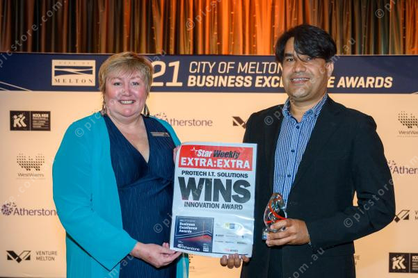 Sponsor Dianne Semmens with Innovation award winner Zulfiqar Ali, owner of Protech IT Solutions (Ivan Kemp) 259496_05