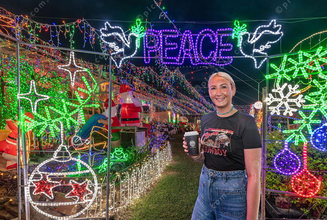Kacee Wallen from Cowgirls Wild Coffee Co enjoying the huge christmas display.