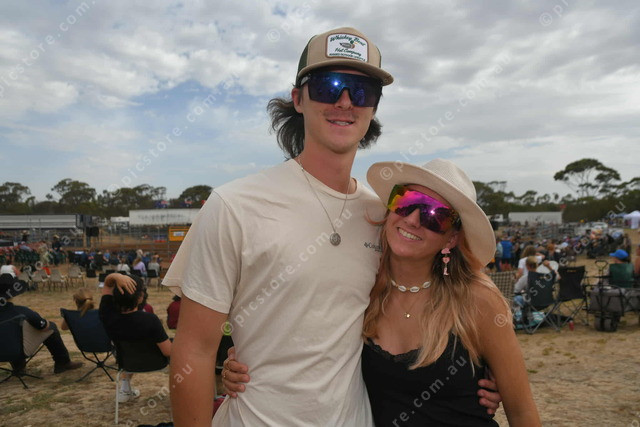 Cam Miller from Scotland and Alex McFarlane from Murray Bridge enjoying the Murray Bridge Rodeo on Saturday, 24 January.