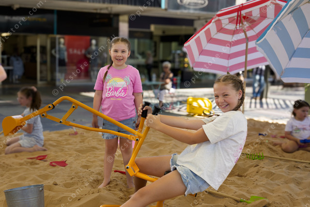 Summer and Maddison Barber dig for treasure in the Mall in the Langtree Mall on Monday 5 January 2026.