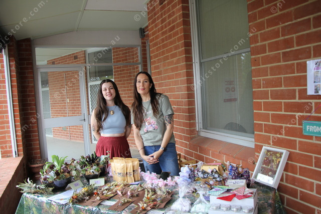 Dakota Cooper and Billy Zeven with their stall of fresh and dried bouquets, terrariums and self care products. (Dee Elferink:529204_07)