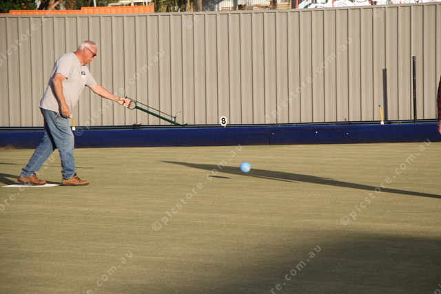 Tony Marshall lets fly at McLaren Vale Bowling Club. (Dee Elferink:530091_19)