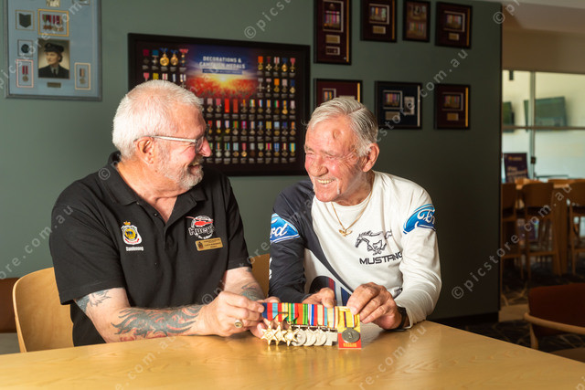 Lance McDermott (President, left) with Jim Wetherall (right) and the Medals Jim is donating. 461548_06