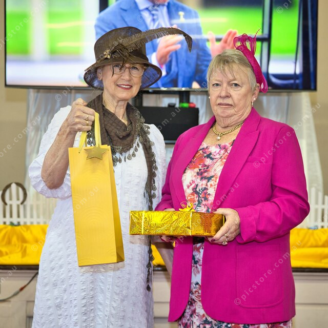 Margaret Mahoney presents Sharyn Perrin with a prize for Most Elegant Lady. (515651_22)