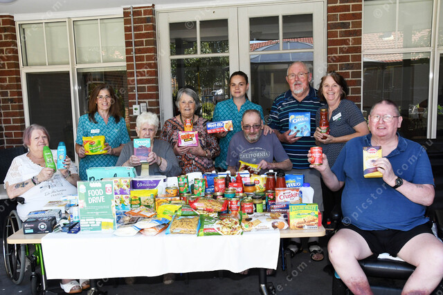 Cheryl, Christine, Dot, Rhonda, Stephanie, Paul, John, Sharon and Walter at the food drive table 456580_01