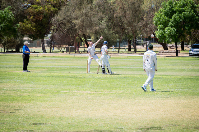 Daniel Kay comes in to bowl for Ouyen. Picture: Ben Gross