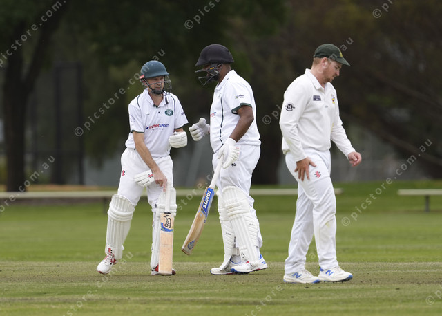Joe Fleri and Hamim Miah during the 2025 Sunraysia Cricket Association round 5 match between Ouyen Rams and Mildura West.