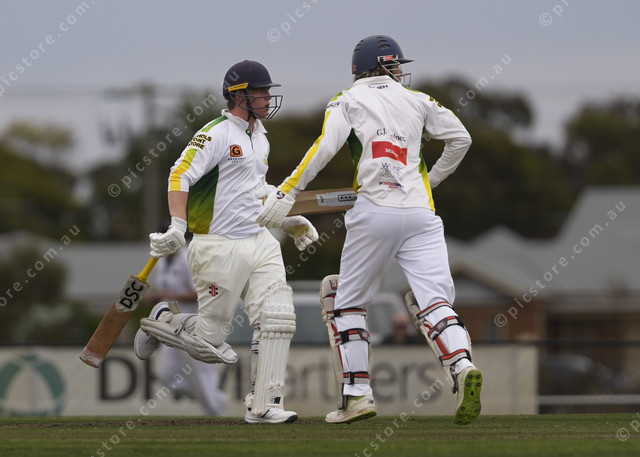 Joel McGinnigle and Shannon Bowen during the 2025 Sunraysia Cricket Association match between Mildura East and Nichols Point.