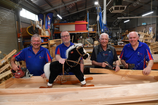 Whittlesea Mens Shed. Pic of Sean Byrne, John Strahan, president Eric Gunstone and Phil Berchdolt. Photo by Damjan Janevski. 446077_04