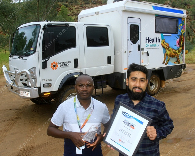 WHEELS: Samson Kiptum and Kumar Aryal with their Health on Wheels truck and their recent award (PIC: PHIL WILLIAMS 481297_06)
