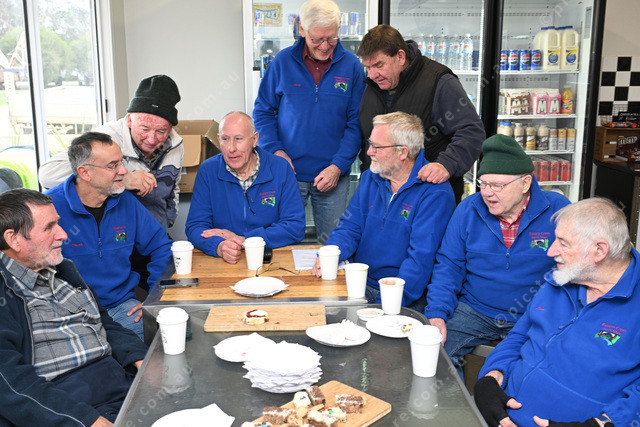 Pic of the members of Riddells Creek Men’s Shed. They’re fed up with their lack of shed. Photo by Damjan Janevski. 488359_04