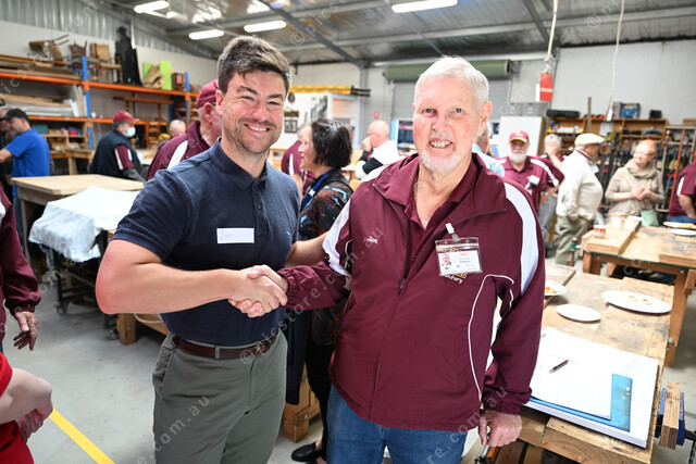 Sunbury Hume Men’s Shed,15th anniversary. Pic of the local MP Sam Rae and president Ian Phillips. (Damjan Janevski). 520796_07